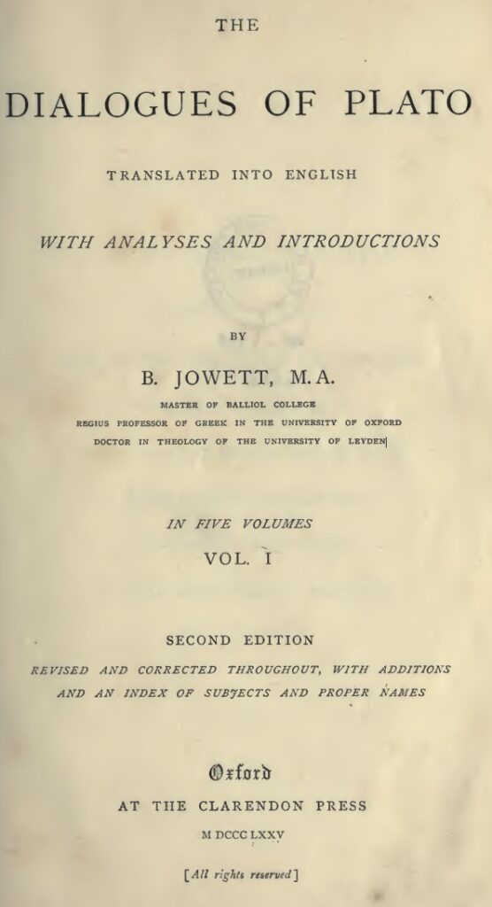 If we hold Jowett’s concerns in mind, we can see how the Apology—a work already mediated by Plato’s memory and perspective—is further reshaped by translation.